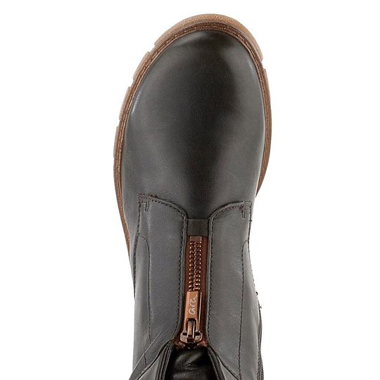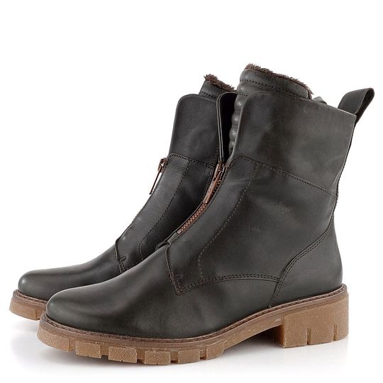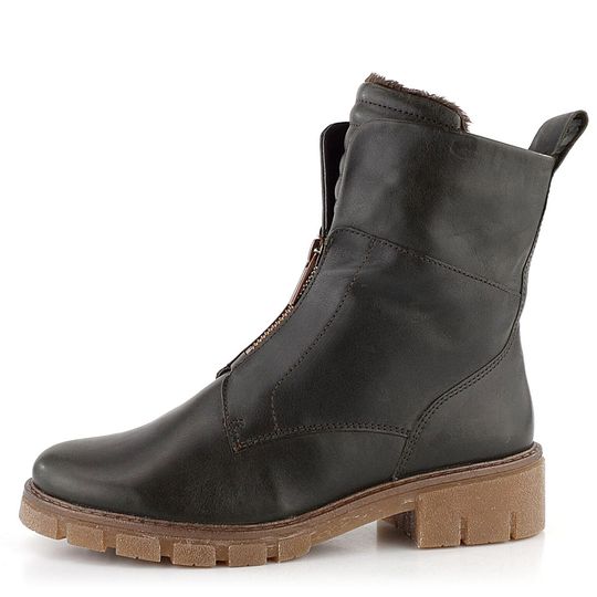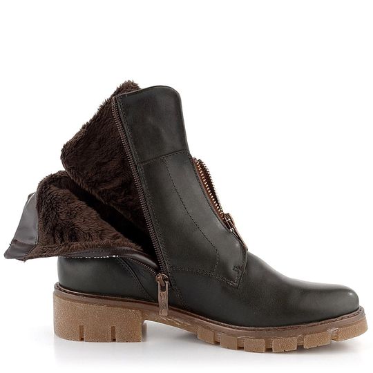 Dámský kožený kotník s teplou podšívkou a s módním zipem na nártu.