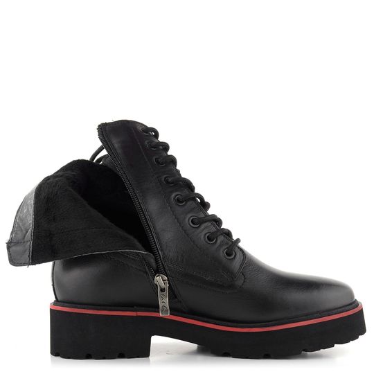 Dámský kotník z hladké kůže v černé barvě, s vnitřním funkčním zipem a robustní podešví.