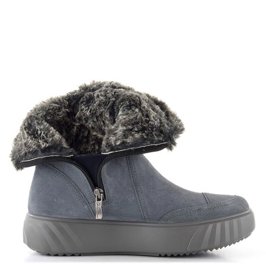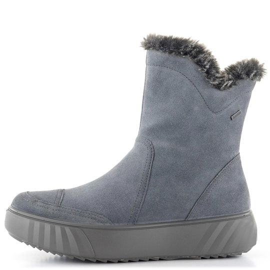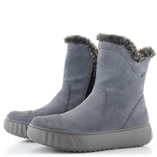 Dámský širší kotník z velurové kůže v tmavší šedé barvě, s teplou podšívkou a funkční membránou.