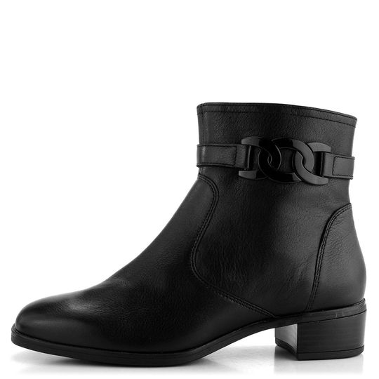 Elegantní a pohodlné boty značky Ara, ideální pro podzimní a zimní sezónu. Tyto širší kotníkové boty v černé barvě jsou vyrobeny z jemné, přirozeně strukturované kůže, která se přizpůsobí tvaru vaší nohy. Šíře H je vhodná pro širší typ chodidla. Boty mají ozdobný pásek s kovovou aplikací a zip na vnitřní straně pro snadné obutí. Uvnitř najdete podšívku z broušené textilie a měkkou vyjímatelnou stélku s ortopedickým srdíčkem, podporou podélné nožní klenby a patním absorbérem. Flexibilní latexová podešev s hrubším vzorkem a široký, 3,8 cm vysoký podpatek zajišťují pohodlí při každodenním nošení. Technologie HighSoft® kombinuje měkký svršek, vypolstrovanou stélku a flexibilní podešev pro maximální komfort. Výška kotníku je 14 cm (bez podpatku).