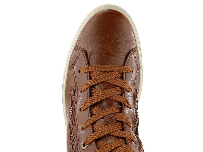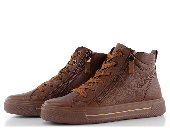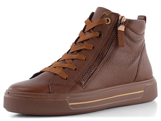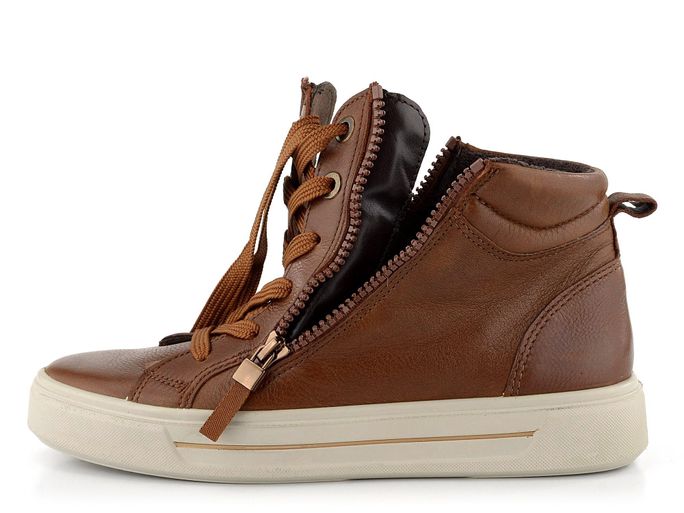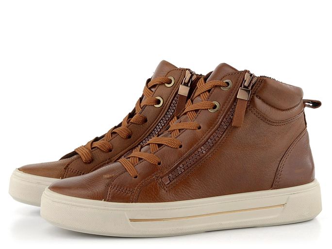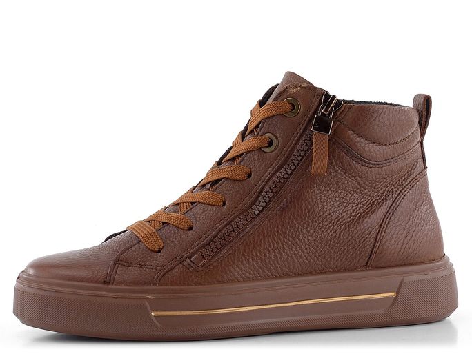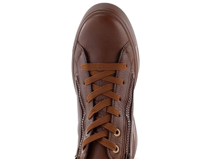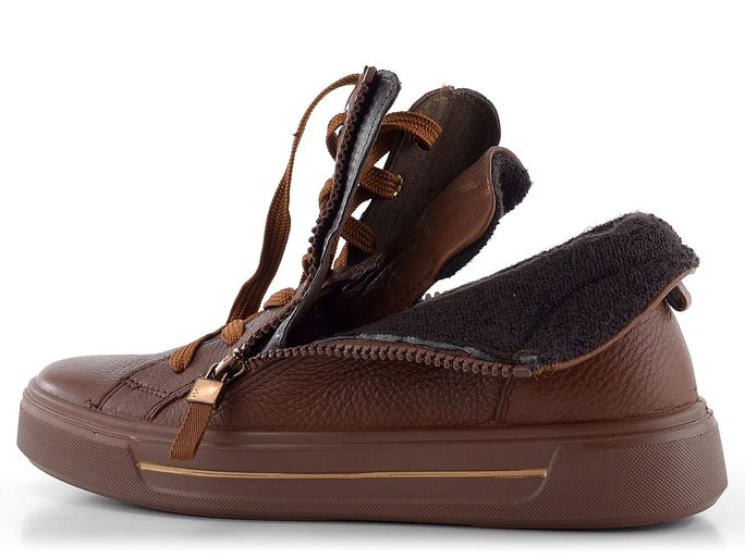 Dámský širší přírodní hnědý kotník na šněrování, s postranním zipem a mírným vyteplením.