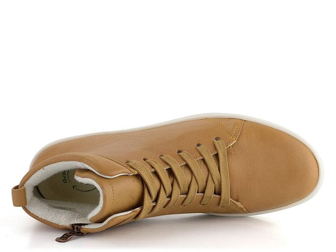 Vyzkoušejte dámské sneakers kotníkové boty značky Ara, které vynikají módním odstínem světle karamelové barvy a komfortním zpracováním. Tyto boty jsou ideální pro podzimní a zimní sezónu, a to nejen díky svršku z jemně strukturované kůže, ale také díky extra měkkému vnitřku s polstrovaným jazykem a patním lemem. Postranní zip zajišťuje snadné a rychlé obutí, zatímco vnitřní podšívka ze smyčkované textilie Ara bamboo® absorbuje o 60 % více vlhkosti než bavlna, což poskytuje přirozené klima a prodyšnost. Vyjímatelná stélka s textilním potahem a flexibilní latexová podešev v kontrastní světlé barvě zaručují pohodlí při každém kroku. Boty jsou součástí modelové řady a-round®, která je udržitelně vyráběná. Výška podpatku je 2,5 cm, což dodává botám elegantní vzhled bez ztráty komfortu. Vyberte si kvalitu a styl s těmito kotníkovými botami od značky Ara.