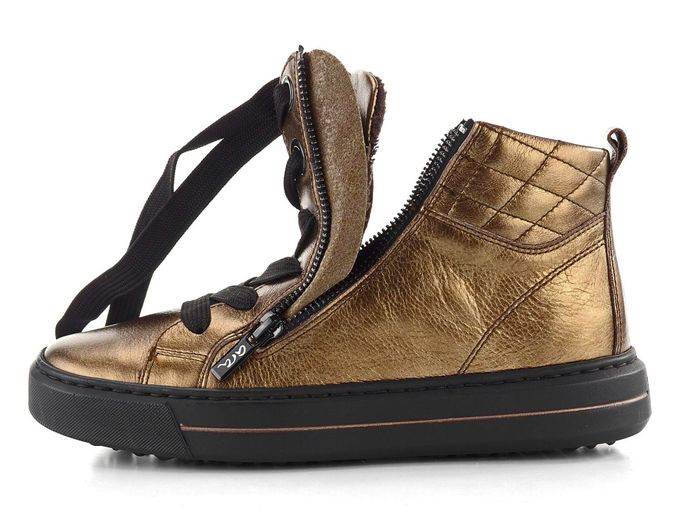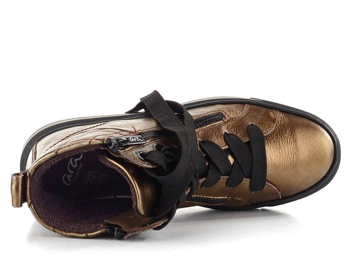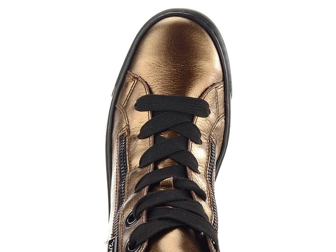 Dámský širší metalický kotník na šněrování, s postranním zipem a mírným vyteplením.