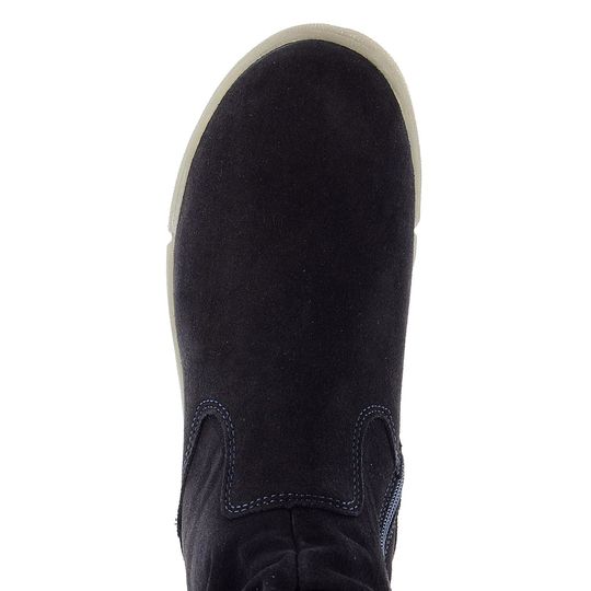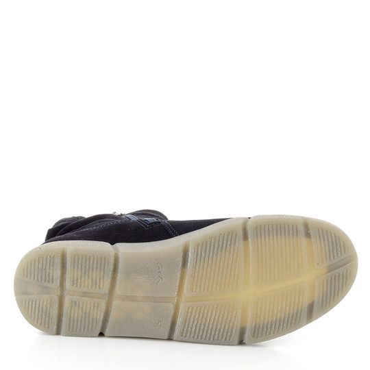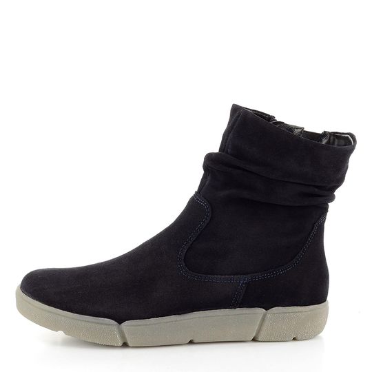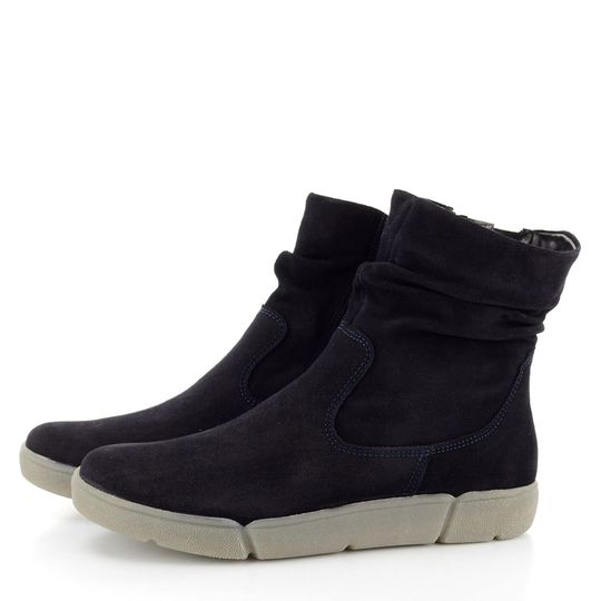 Pohodlný dámský kotník z tmavě modré semišové kůže s módním řasením a na pohodlné flexibilní podešvi.