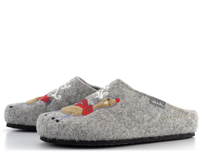 Objevte dokonalý komfort a teplo s domácími pantoflemi značky Ara. Tyto dámské pantofle jsou navrženy pro podzimní a zimní sezónu, kdy je důležité udržet nohy v teple. Svršek i podšívka jsou vyrobeny z kvalitní vlněné plsti, která zajišťuje maximální hřejivost. Šedý melírovaný odstín dodává pantoflím elegantní vzhled, zatímco roztomilý obrázek soba přidává na jejich kouzlu.