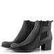 Elegantní dámský lakovaný kotník na podpatku, s postranním zipem a širokou pružnou vsadkou.