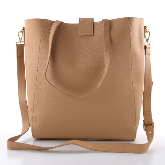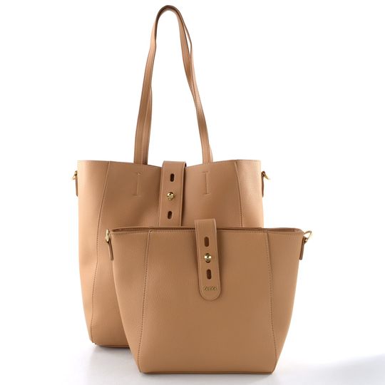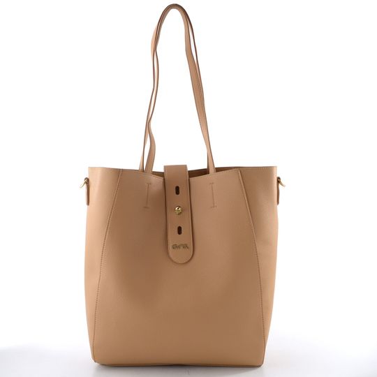 Dámská prostorná shopper kabelka ve světle hnědé barvě s vnitřní, samostatně nositelnou etují.