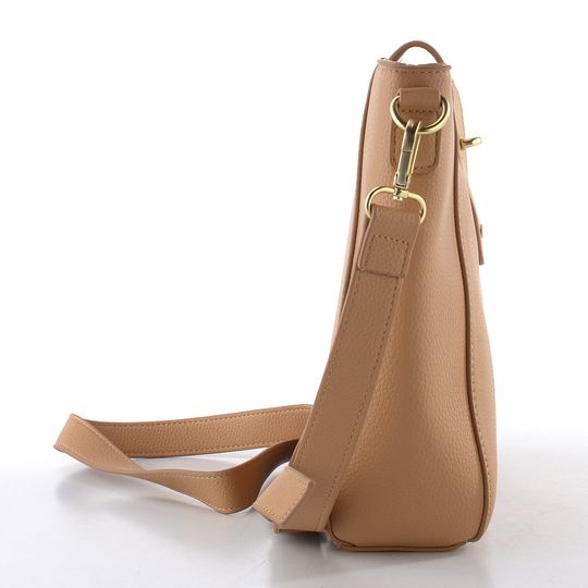 Kabelka je vyrobena z jemně strukturované syntetiky a uzavírá se na řemínek s otočným zámečkem. Součástí je i vyjímatelná etuje, která obsahuje zipovou kapsičku na cennosti a další otevřené kapsičky pro snadný přístup k drobnostem. S odnímatelným ramenním páskem s regulací délky 122 cm si můžete kabelku přizpůsobit podle svých potřeb.
