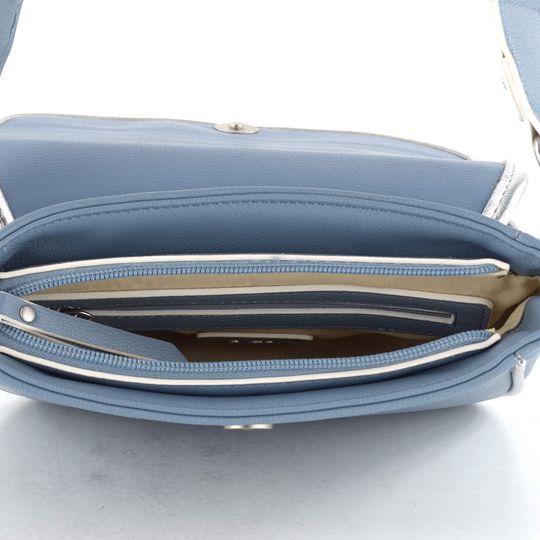 Zažijte eleganci a praktičnost s dámskou crossbody kabelkou značky Ara v nádherném modrém odstínu. Tato kabelka je ideální pro každodenní použití díky své kompaktní velikosti, která pojme všechny vaše nezbytnosti. Je vyrobena z jemně strukturované syntetiky v světlejším modrošedém odstínu se stříbrnými a bílými konturami, což jí dodává jedinečný vzhled. Kovové komponenty ve stříbrné barvě přidávají na eleganci. Praktické detaily jako magnetický druk na klopě, zadní zipová kapsička a vnitřní kapsy na cennosti zajišťují pohodlné používání. Odepínatelný a nastavitelný crossbody popruh (80-130 cm) umožňuje individuální přizpůsobení. Rozměry kabelky jsou 20 cm na šířku, 16 cm na výšku a hloubka dna 7 cm.
