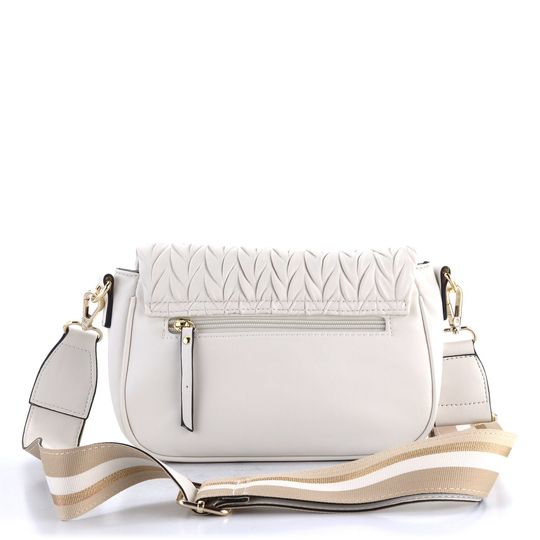 Ara malá dámská crossbody kabelka je ideálním doplňkem pro každodenní nošení i speciální příležitosti. Tento model značky Ara vyniká svým oblým elegantním tvarem a vytlačovaným vzorem na přední klopě, který dodává kabelce jedinečný vzhled. Vyrobena z poddajné syntetiky v smetanové barvě, kabelka je ozdobena kováním ve zlatém odstínu, což dodává celkovému designu luxusní nádech. Klopa je uzavíratelná na dva magnetické druky, zatímco pod ní najdete zip pro bezpečné uložení vašich cenností. Vnitřní vybavení zahrnuje zipovou kapsu na cenné věci a otevřenou kapsu na mobil či klíče. Zadní strana kabelky je opatřena pohotovostní zipovou kapsičkou. Odnímatelný ramenní pásek o délce 65 - 130 cm nabízí pohodlné nošení a sportovnější vzhled díky rypsové stuze v béžových odstínech. Rozměry kabelky jsou 21 cm (šířka), 17 cm (výška) a 8 cm (hloubka dna).