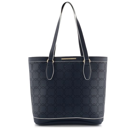 Středně velká dámská kabelka přes rameno s prořezávaným vzorem a vnitřní odepínatelnou etují.
