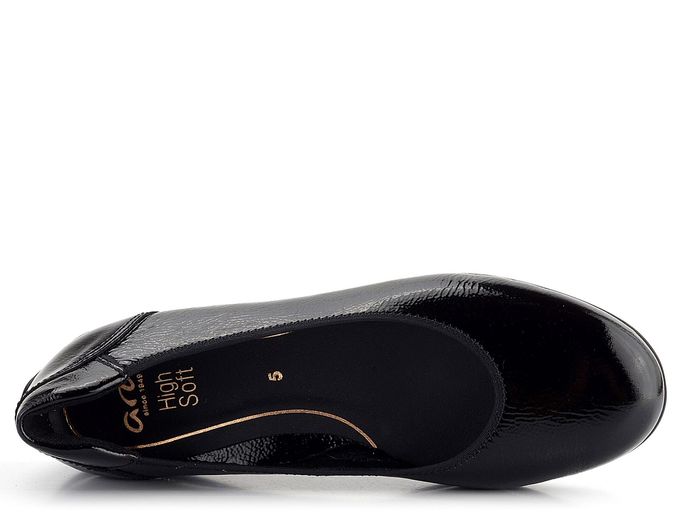 Luxusní a komfortní baleríny značky Ara jsou ideální volbou pro ženy, které hledají pohodlí a styl. Tyto baleríny z kolekce podzim/zima 2023/24 jsou vyrobeny z mačkané lakované kůže v elegantní černé barvě, která dodává sofistikovaný vzhled. Díky technologii HighSoft® kombinující měkký svršek a polstrovanou stélku, poskytují tyto boty maximální pohodlí po celý den.
