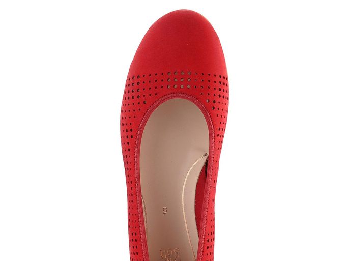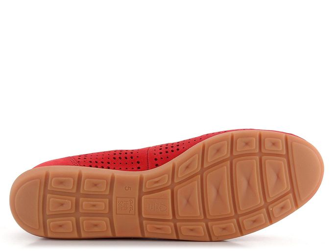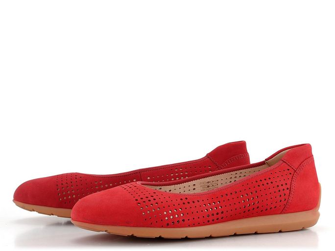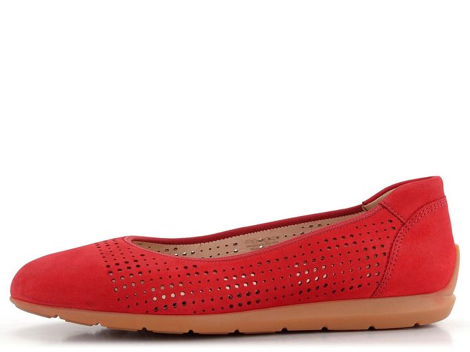 Ara komfortní perforované baleríny Sardinia-Sport Flamme 12-13308-19 jsou dokonalou volbou pro ženy, které hledají styl a pohodlí v jednom. Tyto baleríny značky Ara se pyšní svrškem z poddajné nubukové kůže v jasně červené barvě, která dodá vašemu outfitu šmrnc. Díky prořezávanému vzoru je zajištěna skvělá prodyšnost, což oceníte zejména v teplejších dnech. Pružný obvodový lem a zabroušený vnitřní opatek s měkčeným lemem udrží vaši patu na správném místě. Extra měkká kožená stélka s podporou podélné klenby a inovativní technologie HighSoft® kombinující měkký svršek, polstrovanou stélku a flexibilní podešev poskytují dokonalé pohodlí při každém kroku. Kvalitní a vysoce ohebná podešev z přírodního kaučuku zaručuje dlouhou životnost a komfort. Výška podpatku je 1,8 cm, což je ideální pro celodenní nošení. Tyto baleríny jsou perfektní volbou pro jaro a léto, ať už do města, do kanceláře nebo na lehkou procházku.