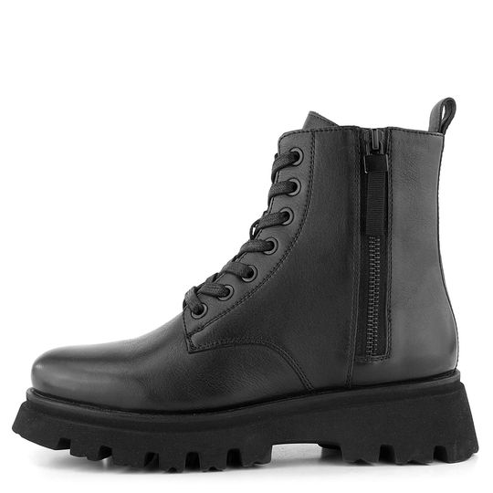 Stylový dámský kotník značky Ara na hrubé podešvi je ideální volbou pro podzimní a zimní sezónu. Vyšší střih s kulatou špičkou a svrškem z hladké kůže v elegantní černé barvě dodává botám nadčasový vzhled. Na vnější straně najdete ozdobný zip, který nelze rozepnout, zatímco na vnitřní straně je funkční zip pro snadné obutí. Uvnitř boty se nachází jemná vlasová podšívka a kožené vnitřní lemy, které zaručují komfortní nošení. Tvarovaná vyjímatelná stélka HighSoft® s vystouplým srdíčkem, podélnou klenbou a patní částí poskytuje maximální pohodlí. Módní vysoká platforma s hrubým vzorkem je nejen stylová, ale i lehká. Výška kotníku je 15,5 cm bez podešve. Tento model je vyroben lepeným způsobem, což zaručuje jeho dlouhou životnost.
