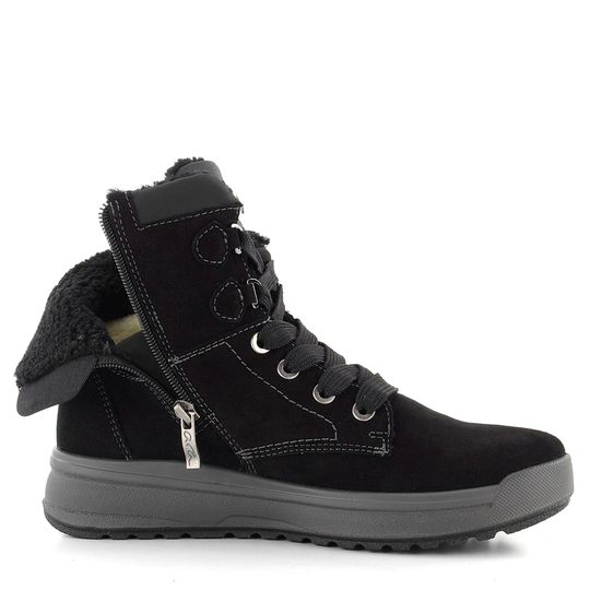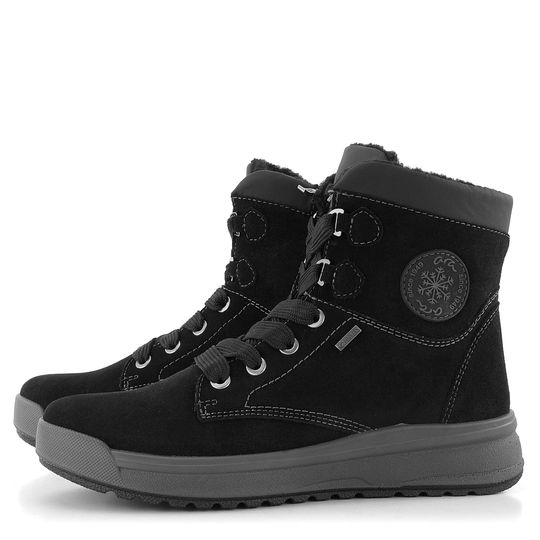 Dámský kotník ze semišové kůže, s funkční membránou, teplou podšívkou a vyšší podešví.