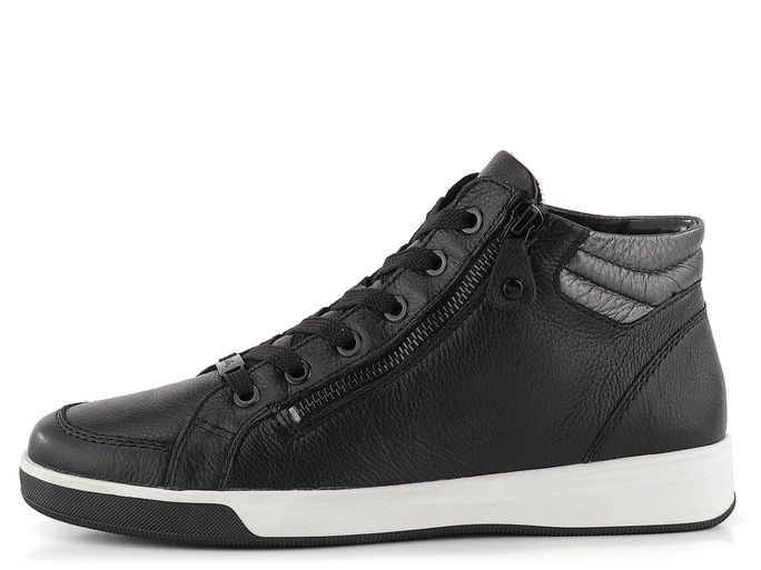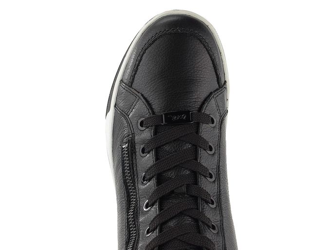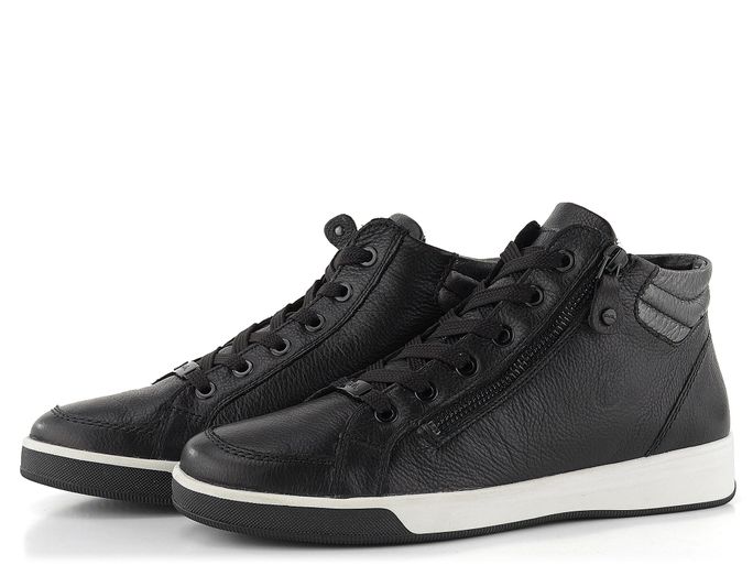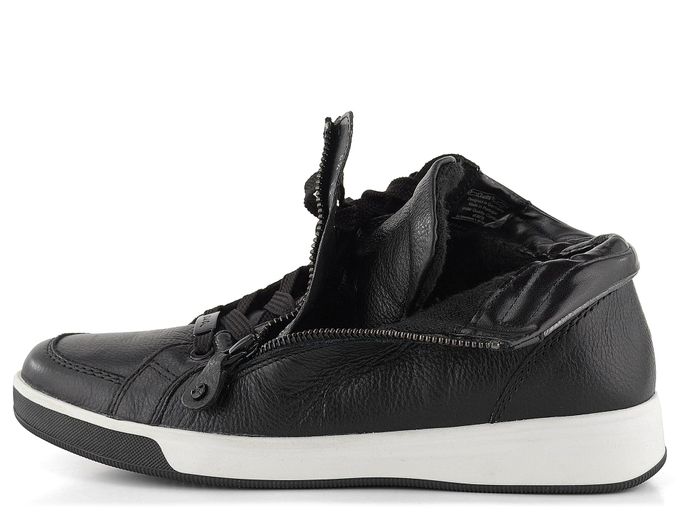 Dámské kožené kotníkové tenisky v černé barvě, s postranním zipem a tvarovanou vyjímatelnou stélkou.