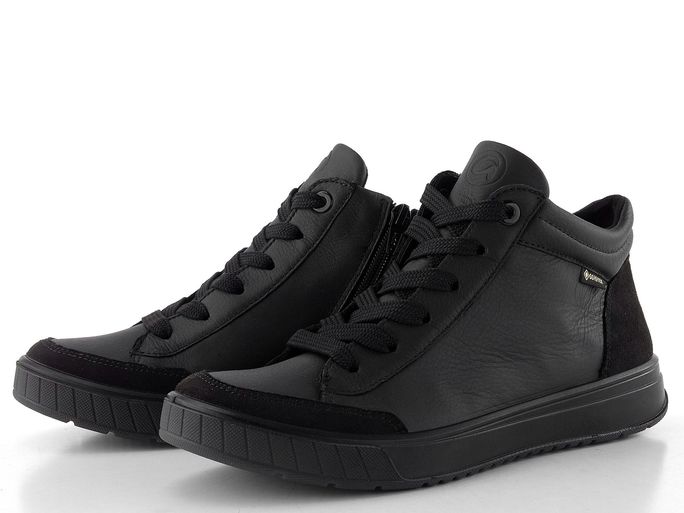 Dámské kotníkové tenisky značky Ara představují ideální volbu pro podzimní a zimní dny. S jejich stylovým sportovním střihem a elegantní černou barvou se skvěle hodí k různým outfitům. Vyrobeny z kvalitní hladké kůže a syntetiky, tyto tenisky nabízejí nejen atraktivní vzhled, ale i praktické funkce. Funkční postranní zip usnadňuje obutí, zatímco vodoodpudivá membrána Gore-Tex® zajišťuje, že vaše nohy zůstanou v suchu a teple.
