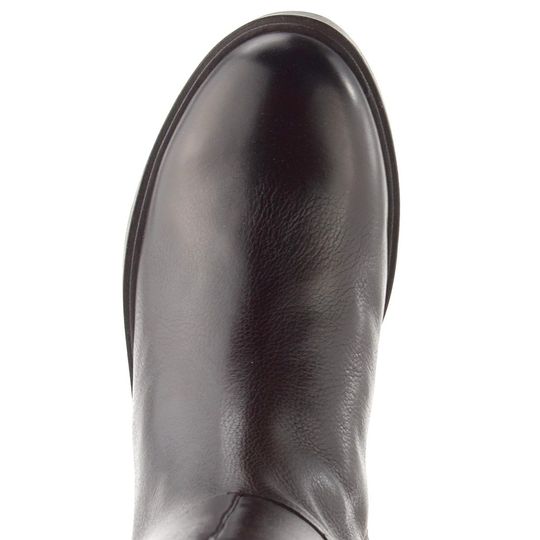 Komfortní dámské kožené kozačky v tmavě hnědé barvě s postranním zipem a hrubou latexovou podešví.