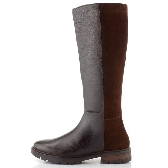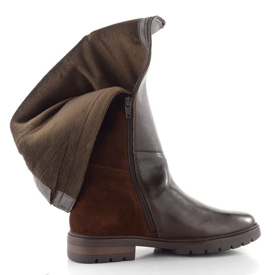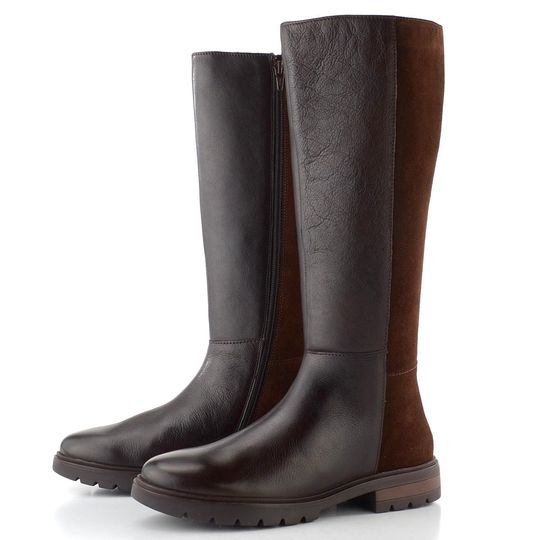 Dámské kožené kozačky značky Ara jsou ideální volbou pro podzimní a zimní sezónu. Svršek z kombinace hladké a semišové kůže v tmavě hnědé (kávové) barvě dodává elegantní vzhled, zatímco teplá vlasová podšívka a širší lýtko zaručují pohodlí i v chladných dnech. Vnitřní postranní zip v celé délce usnadňuje obouvání a pružná vsadka vedle zipu zajišťuje perfektní přizpůsobení. Kozačky mají měkkou vyjímatelnou vložku s podporou podélné nožní klenby a robustní latexovou podešev s hrubým vzorkem pro stabilitu. S výškou 36,5 cm a obvodem 40 cm (pro velikost 38) se hodí i pro širší lýtka.
