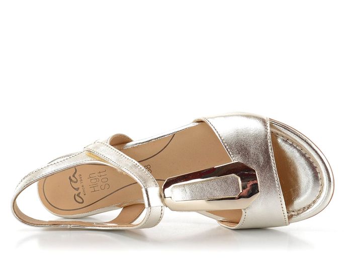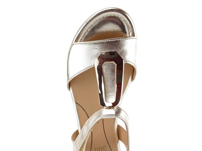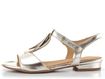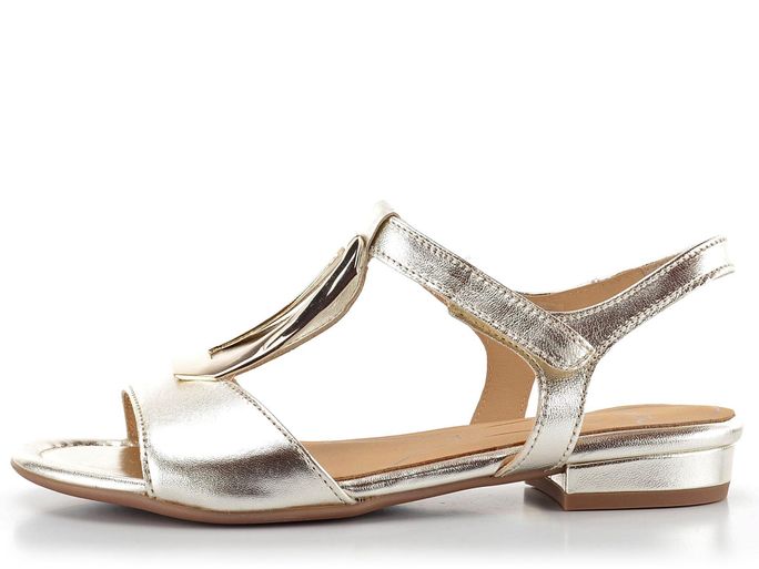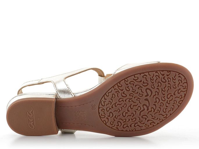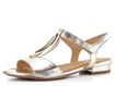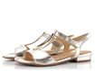 Dámské sandálky na nízkém podpatku mají T pásek na nártu a plastovou sponu.