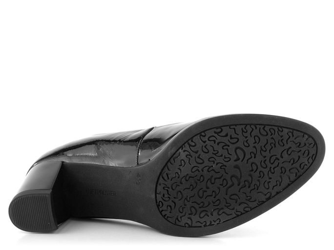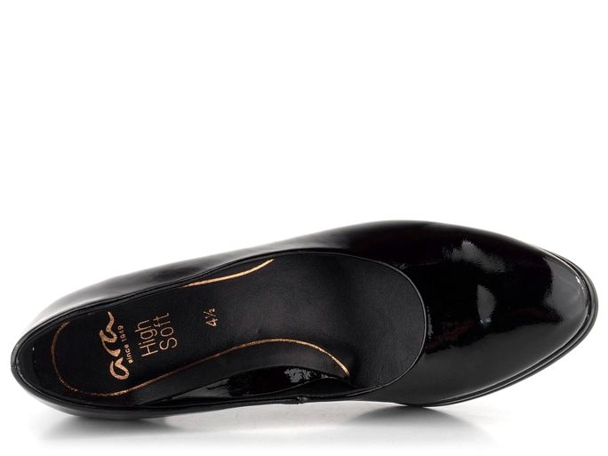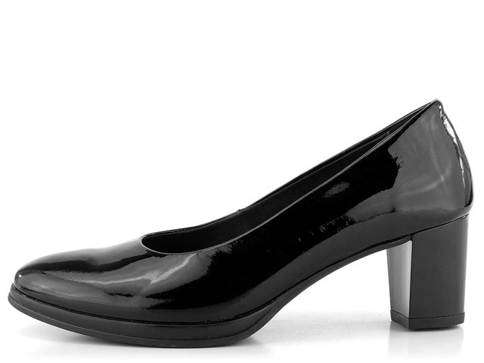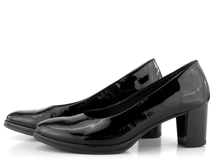 Elegantní dámské lodičky z lakované kůže na středně vysokém, stabilním podpatku.