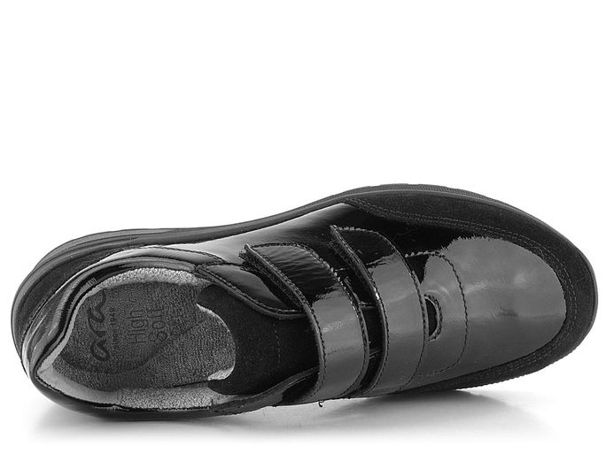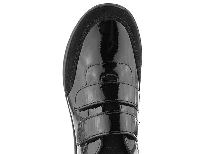 Dámské komfortní polobotky v lakovaném provedení, se dvěma funkčními zipy a vyšší podešví s klínkem.