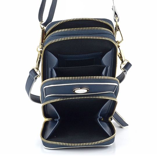 Malá dámská crossbody kabelka v tmavě modré barvě.