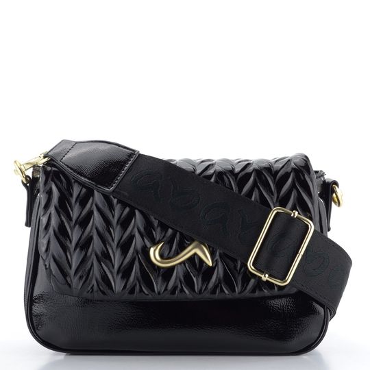 Ara malá dámská crossbody kabelka značky Ara se zdobenou klopou je ideální volbou pro každodenní nošení i slavnostní příležitosti. Vyrobena z lakované syntetiky, její přední klopa je zdobena vytlačovaným plastickým vzorem, což jí dodává elegantní vzhled. Kabelka je v černé barvě s kováním ve zlatém odstínu, což jí přidává na luxusu.
