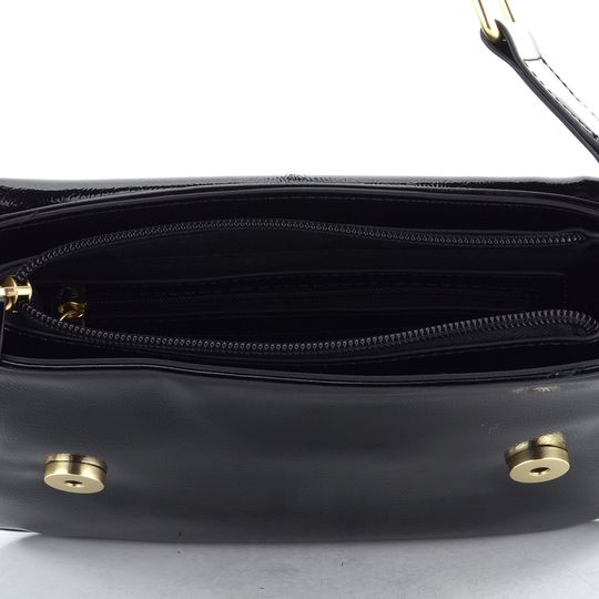 Klopu lze uzavřít pomocí dvou magnetických druků a pod ní se nachází zip pro bezpečné uložení vašich věcí. Vnitřní prostor je prakticky rozdělen: najdete zde jednu zipovou kapsu na cennosti a jednu otevřenou kapsu na mobil či klíče. Zadní strana kabelky je opatřena pohotovostní zipovou kapsičkou.
