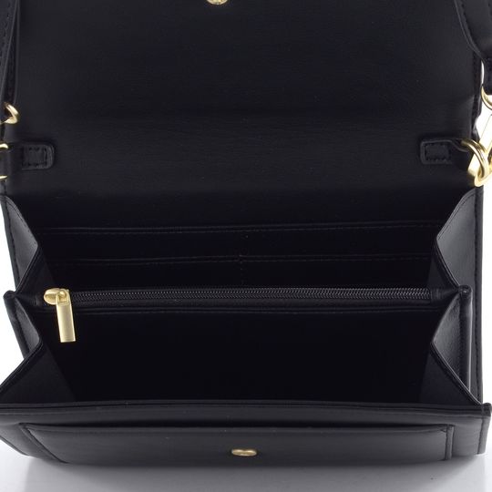 Klopa se uzavírá na kovový druk, což zajišťuje snadný přístup k vašim věcem. Hlavní úložný prostor je rozdělený zipovou přepážkou a obsahuje šest přihrádek na karty a jednu větší přihrádku na doklady či účtenky. Mimo hlavní prostor je k dispozici otevřená přihrádka, takže kabelku lze využít i jako větší peněženku přes rameno.