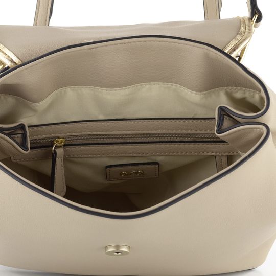 Značka Ara představuje dámský batoh v elegantním provedení, který se skvěle hodí k džínům i šatičkám. Tento batoh je ideální pro každodenní nošení, přičemž formát A4 se do něj nevejde, což z něj činí perfektní volbu pro ty, kdo hledají kompaktní řešení. Vyrobený ze syntetického materiálu, batoh kombinuje béžovou barvu se zlatými a černými konturami, což mu dodává sofistikovaný vzhled. Kovové komponenty ve světle zlaté barvě a kovová kruhová ozdoba na klopě dodávají batohu luxusní nádech. Praktické vnitřní vybavení zahrnuje kapsu na zip a dvě otevřené kapsičky. Délkově nastavitelné zádové popruhy umožňují pohodlné nošení. Rozměry batohu jsou 30 cm na šířku, 28 cm na výšku a 10 cm hloubka dna.