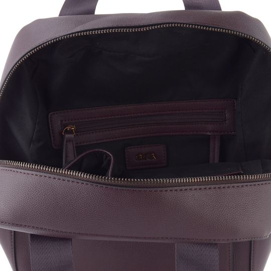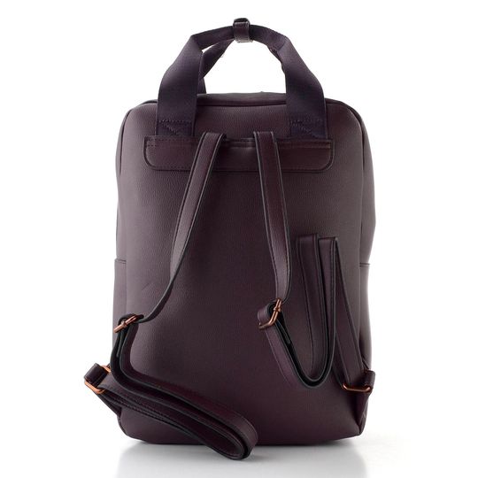 Dámský městský batoh ve vínově hnědé barvě a jednoduchém prostorném střihu.