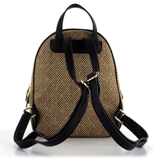 Dámský městský batůžek s vytkávaným vzorem v béžovo-černé barevné kombinaci.