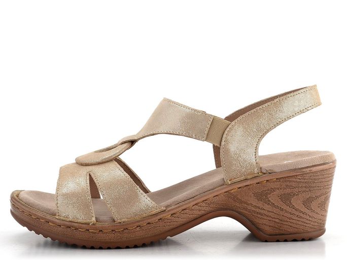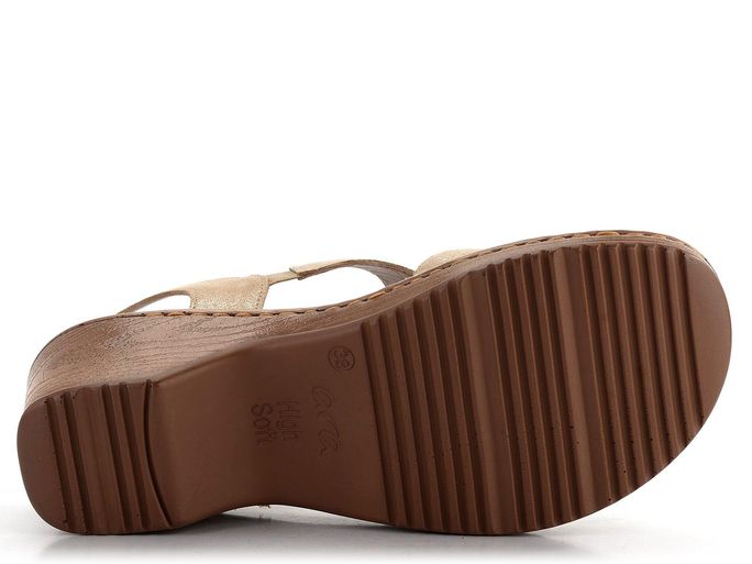 Sandálky mají hladkou koženou podšívku a měkkou stélku potaženou semišovou kůží, což zajišťuje maximální komfort při nošení. Díky inovativní technologii HighSoft® se kombinují měkký svršek a polstrovaná stélka pro dokonalé pohodlí. Vyšší podešev se širokým podpatkem v dekoru dřeva o výšce 5,5 cm přidává na stabilitě a eleganci.