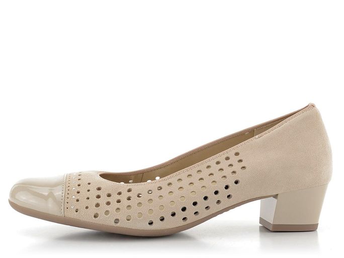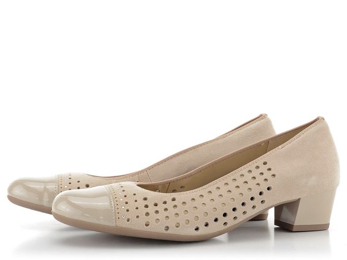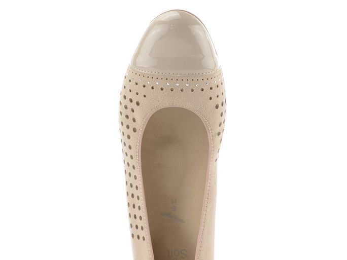 Dámské lodičky ve světle béžovém odstínu jsou v širším střihu H a mají vyjímatelnou, extra měkkou stélku uvnitř.