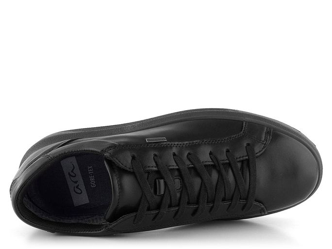 Pánské ležérní polobotky z hladké kůže v černé barvě vybavené funkční membránou Gore-Tex a vyjímatelnou stélkou.
