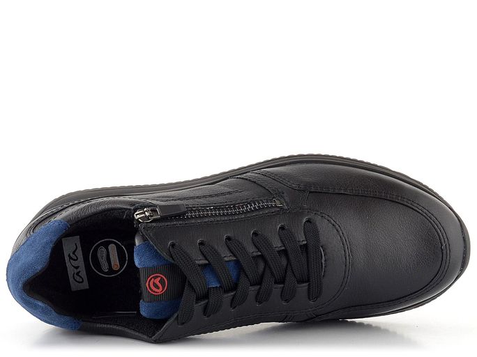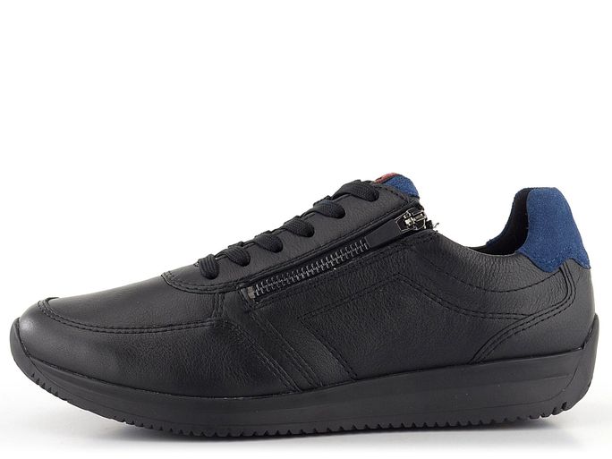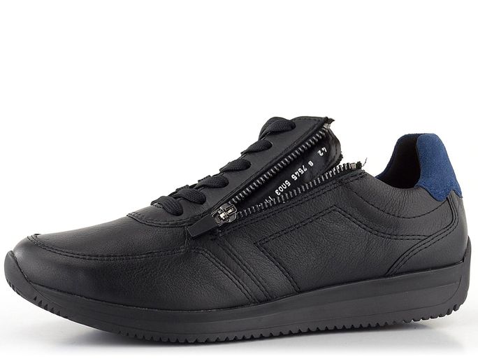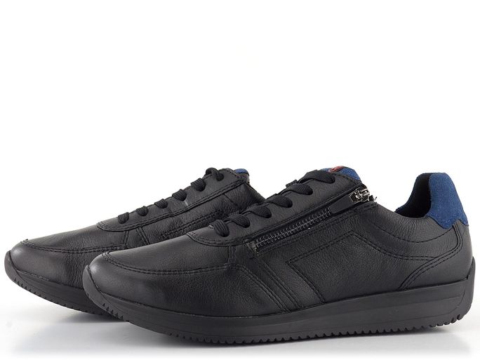 Pánské polobotky ve sportovním stylu, vyrobené z hladké kůže a vybavené zipem a vyjímatelnou stélkou.