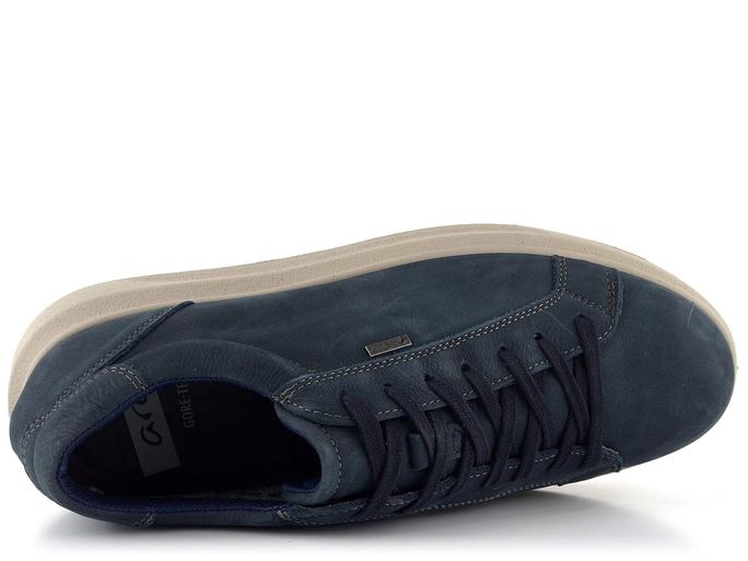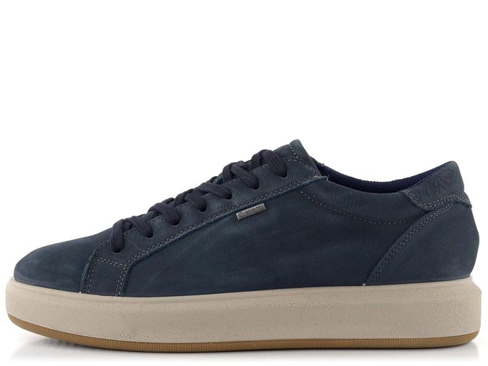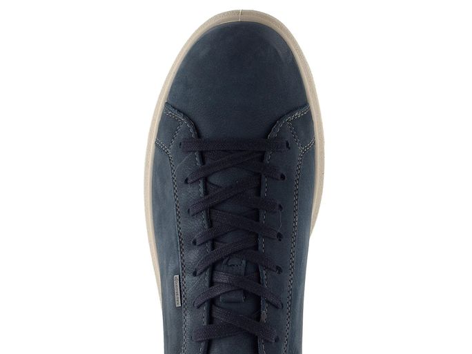 Pánské ležérní polobotky z nubukové kůže v tmavě modré barvě vybavené funkční membránou Gore-Tex a vyjímatelnou stélkou.