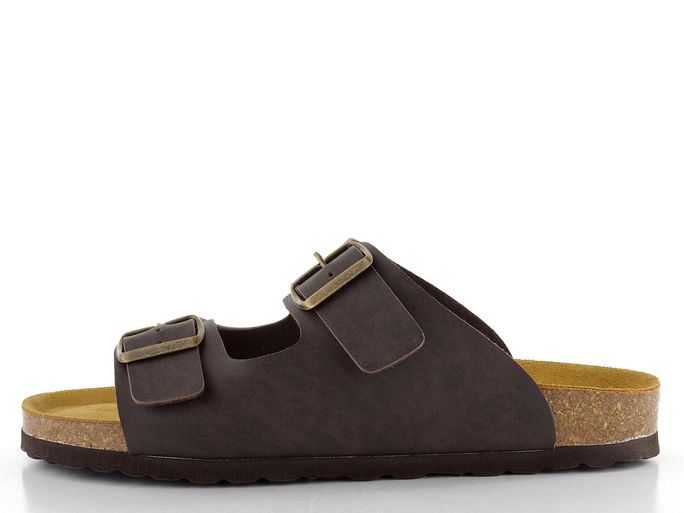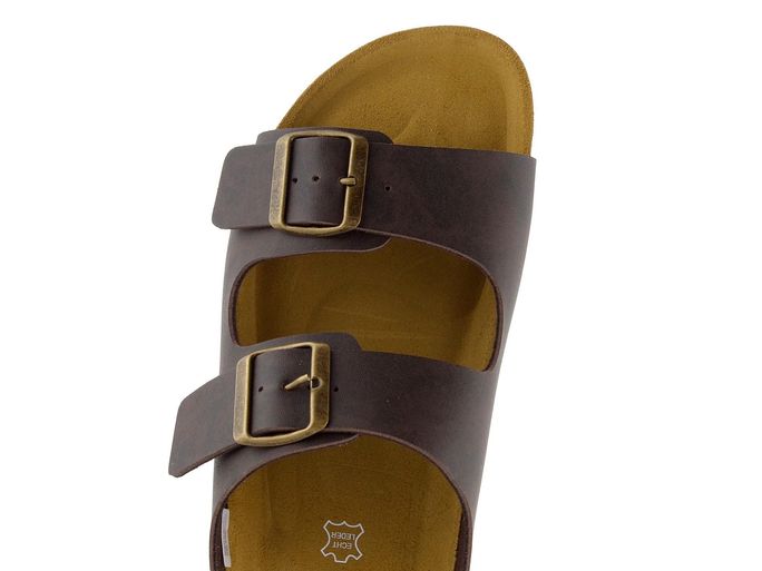 Pánské pantofle v tmavě hnědé barvě, se dvěma nastavitelnými pásky a měkkou koženou stélkou.