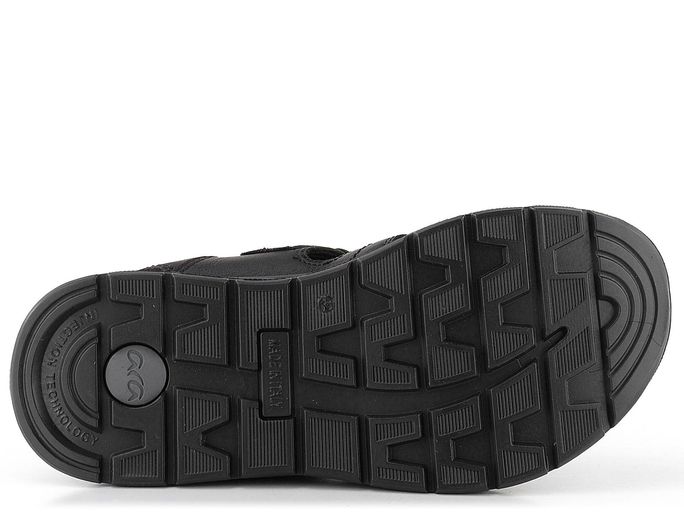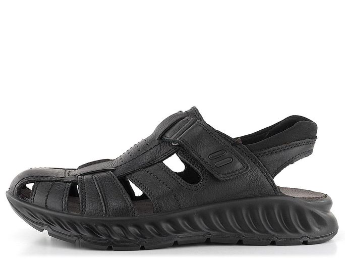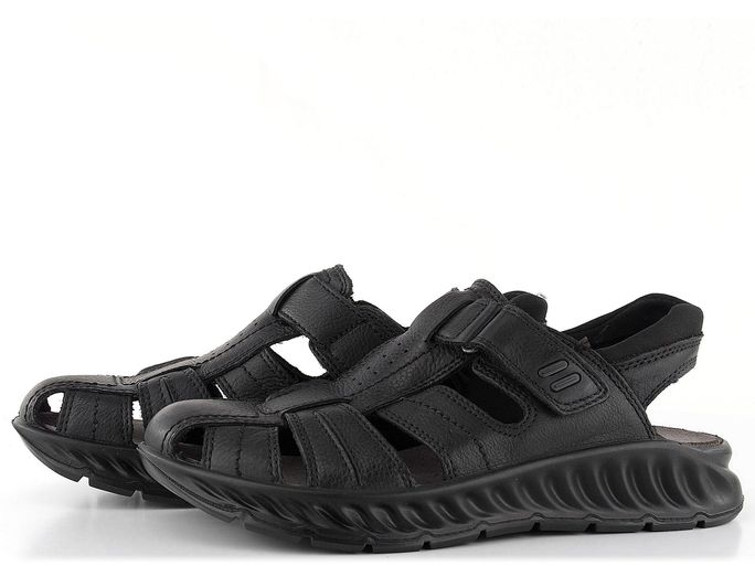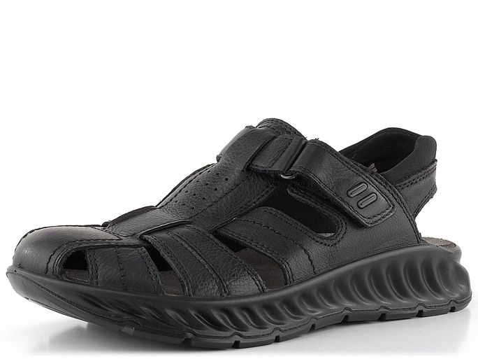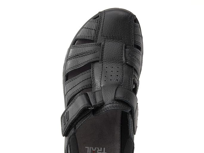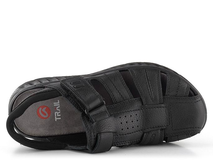 Pánské černé kožené sandály s uzavřenou špičkou a zapínáním na suchý zip.