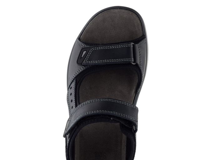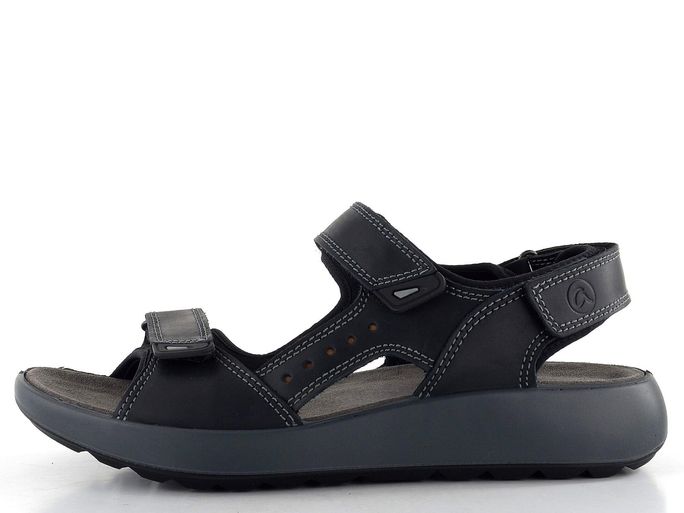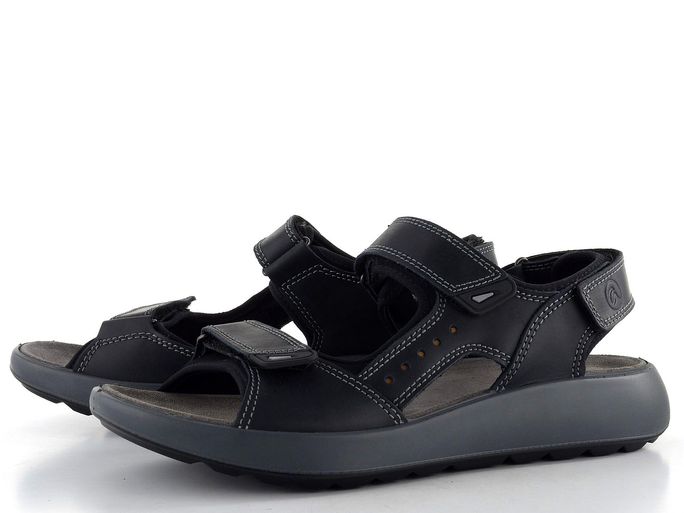 Pánské kožené sandály v černé barvě, se třemi upínacími pásky na suchý zip a příjemně měkkou nášlapnou stélkou.