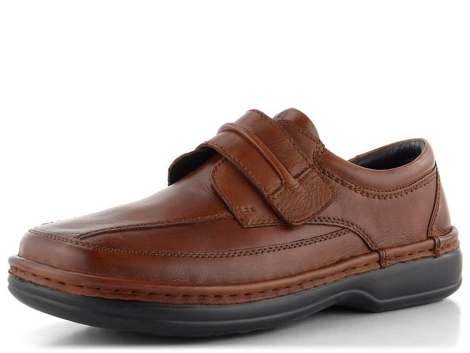 Pánské široké polobotky z hladké hnědé kůže a v pohodlném, bytelném střihu.