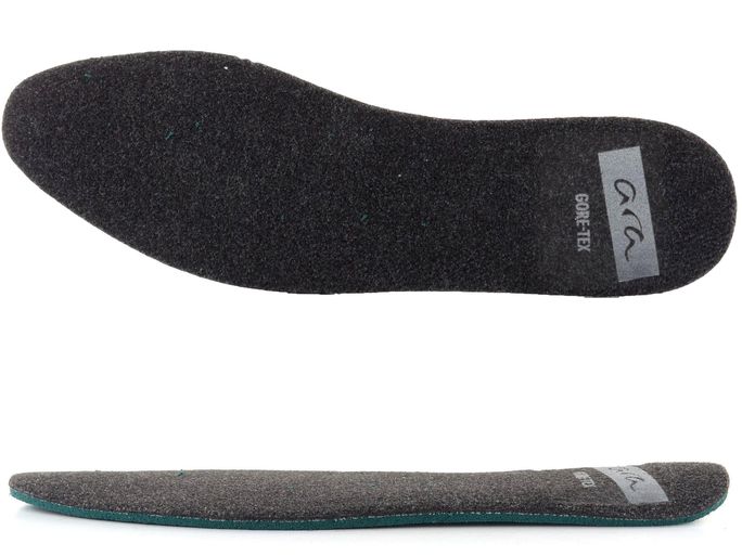 Vnitřní podšívka z velmi teplé textilní střiže (umělý beránek) a měkká vyjímatelná stélka s filcovým potahem poskytují maximální teplo a komfort. Boty jsou vybaveny voděodolnou membránou Gore-Tex®, která působí jako tepelný izolant a nepropustí vlhkost. Lehká a flexibilní podešev s hrubým vzorkem a širokým podpatkem zajišťuje stabilitu i na kluzkém povrchu. Výška kotníku je 10 cm (bez podešve, měřeno v zadní části), což poskytuje dostatečnou ochranu před chladem. Boty jsou vyrobeny šitým a lepeným výrobním způsobem, což zaručuje jejich dlouhou životnost.