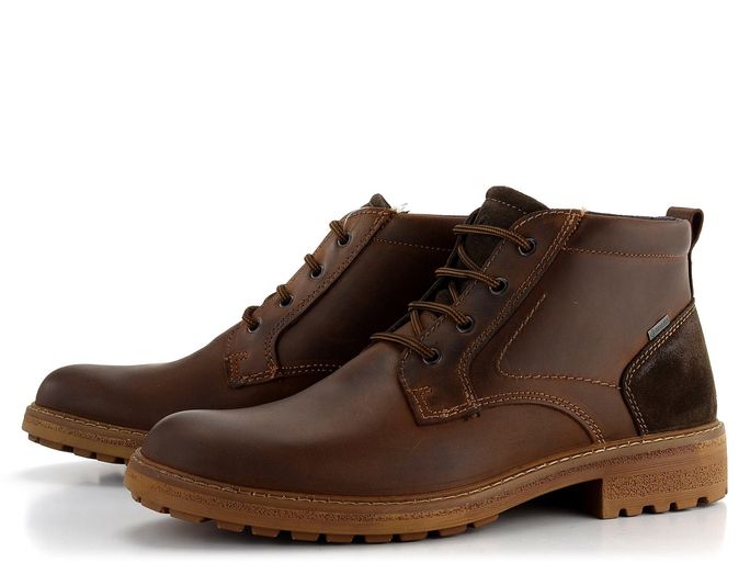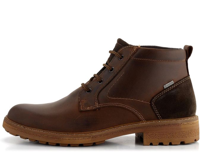 Pro chladné podzimní a zimní dny představujeme komfortní pánské kotníkové boty od značky Ara, model Frederik Marrone/Caffee 11-24711-44. Tyto boty vynikají robustnějším střihem s kulatou špičkou a svrškem z kombinace maštěné a semišové kůže. Čokoládově hnědá barva je doplněna tmavě hnědým patním dílem, což dodává botám elegantní vzhled. Klasické šněrování a měkčený kotníkový lem zajišťují pohodlí při každém kroku.