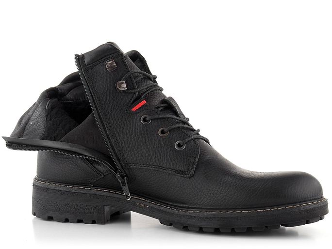 Pánský zimní kožený kotník s teplou podšívkou, funkční membránou a s postranním zipem pro snadné obutí.