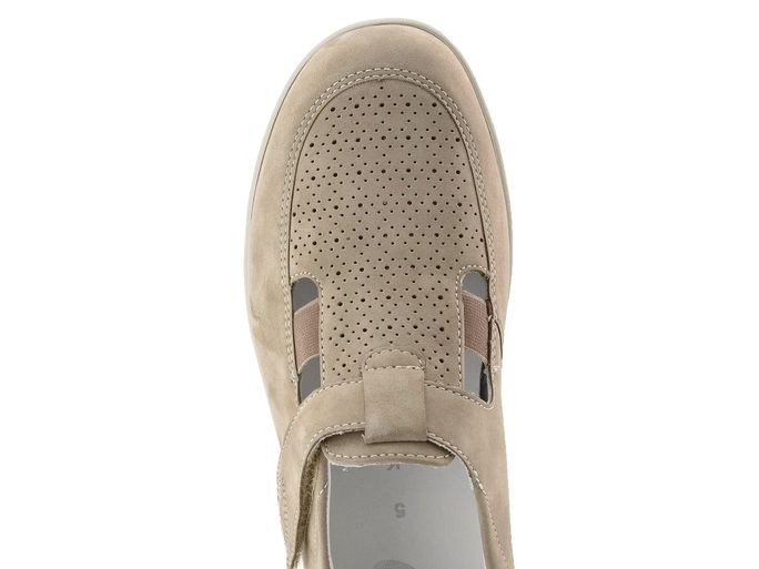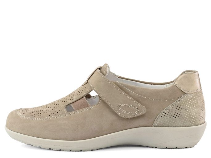 Dámské prozouvací polobotky v béžové barvě, určené pro velmi široký typ chodidla.