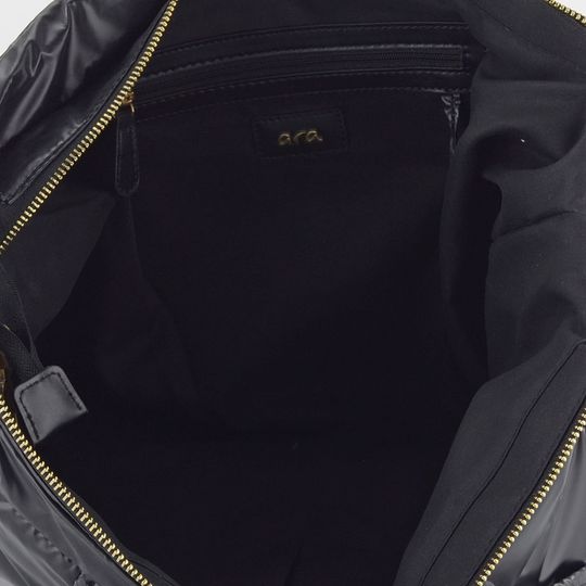 Elegantní a praktická prošívaná shopper kabelka od značky Ara je ideálním doplňkem pro každodenní nošení. Díky svému velkému prostornému střihu snadno pojme formát A4, což z ní činí skvělého společníka do práce i na nákupy. Kabelka je vyrobena z hedvábně lesklé textilie, prošívané do čtvercového vzoru, což jí dodává luxusní vzhled. Lehkost a měkké polstrování zajišťují pohodlné nošení. Černá barva s kováním ve světle zlaté barvě a logem značky na přední straně podtrhuje její sofistikovanost. Hlavní kapsa na zip zaručuje bezpečnost vašich věcí, zatímco vnitřní výbava nabízí dostatek místa pro cennosti, mobil a další drobnosti. Kabelka disponuje madly vzdálenými od hrany cca 28 cm a odepínatelným crossbody popruhem s nastavitelnou délkou (85-155 cm). Rozměry: horní šíře 42 cm, výška 32 cm, dno má hloubku 8 cm. Tento model z kolekce podzim/zima 2024/25 je dokonalým spojením stylu a funkčnosti.