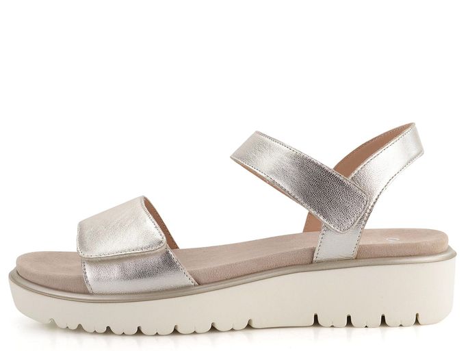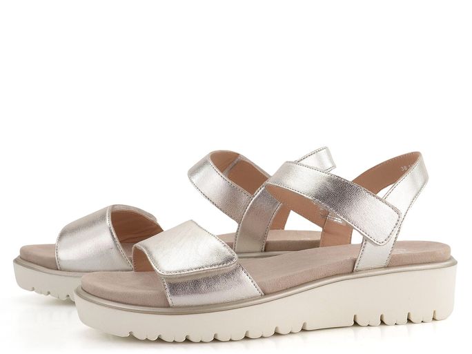 Objevte jednoduchost a komfort s sandály značky Ara Bilbao Platin 12-33518-11. Tyto páskové boty jsou ideální pro jarní a letní sezónu díky svému pohodlnému designu a snadnému obouvání. Svršek je vyroben z hladké kůže v jemném odstínu stříbrné barvy, který dodá vašemu outfitu elegantní nádech. Oba pásky, přední a kolem nohy, jsou upínané na suchý zip, což umožňuje snadné přizpůsobení obuvi vašemu chodidlu.