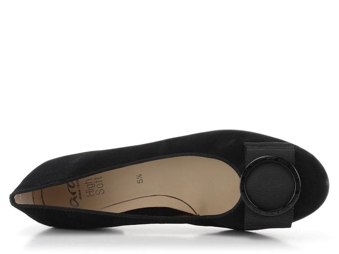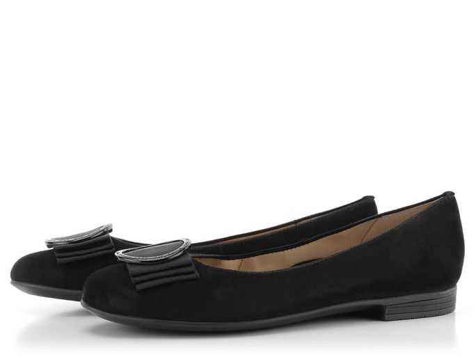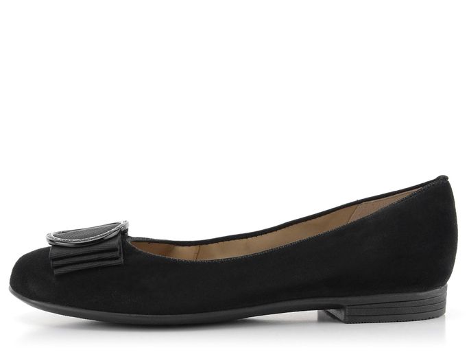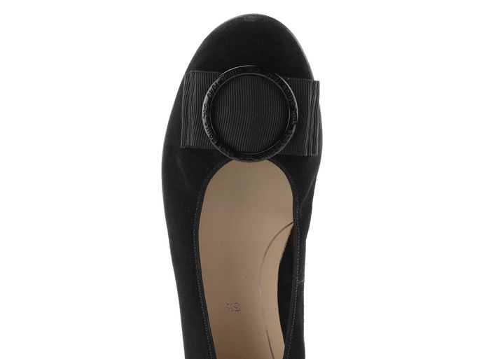 Elegantní dámské balerínky z jemné semišové kůže s ozdobnou sponou na špičce.
