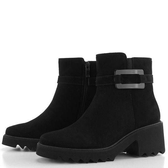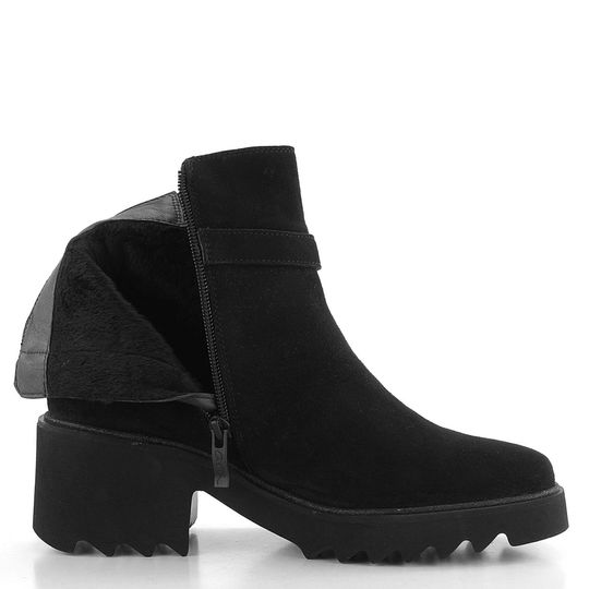 Dámský semišový kotník s postranním zipem, teplejší podšívkou a vysokou komfortní podešví.